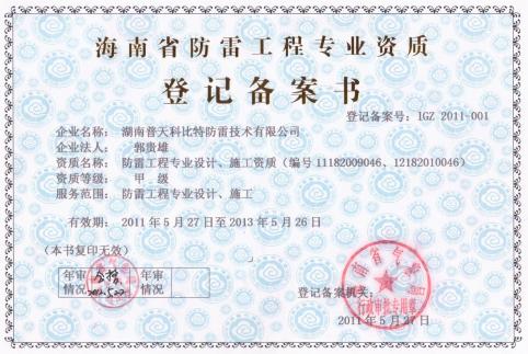 湖南普天科比特防雷技術(shù)有限公司-海口分公司 海南普天科比特防雷技術(shù)有限公司——0898-66722468,主營(yíng)業(yè)務(wù):海南防雷產(chǎn)品,海南防雷工程,海南防雷檢測(cè),??诜览桩a(chǎn)品備案,三亞防雷產(chǎn)品,三亞防雷工程。海...(查看更多)
